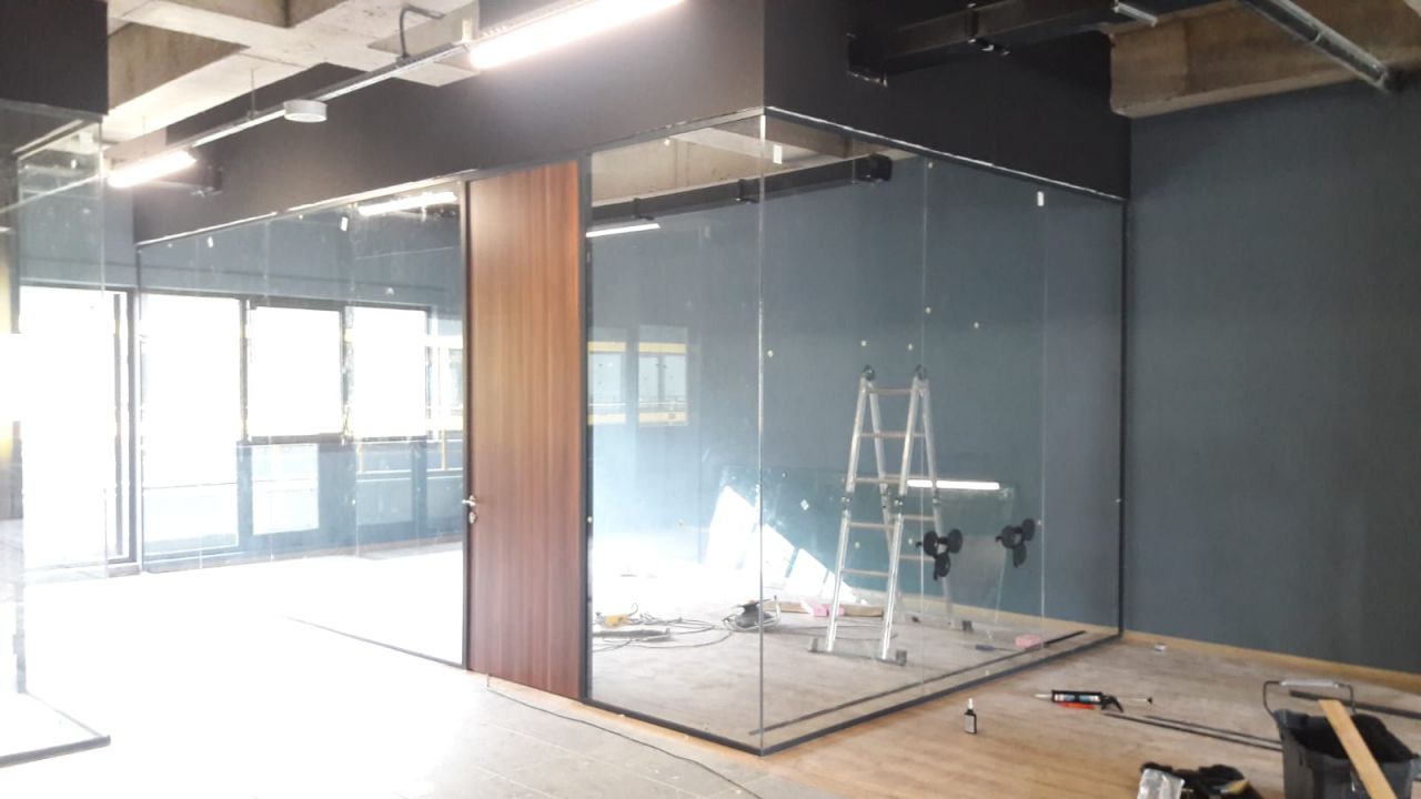 Zemin & Tavan & Dikey Duvarlar arası, yatay ve düşeyde kesintisiz şeffaflığın ön planda tutulduğu, cam cama birleşim, tek cam bölme duvar sistemidir.